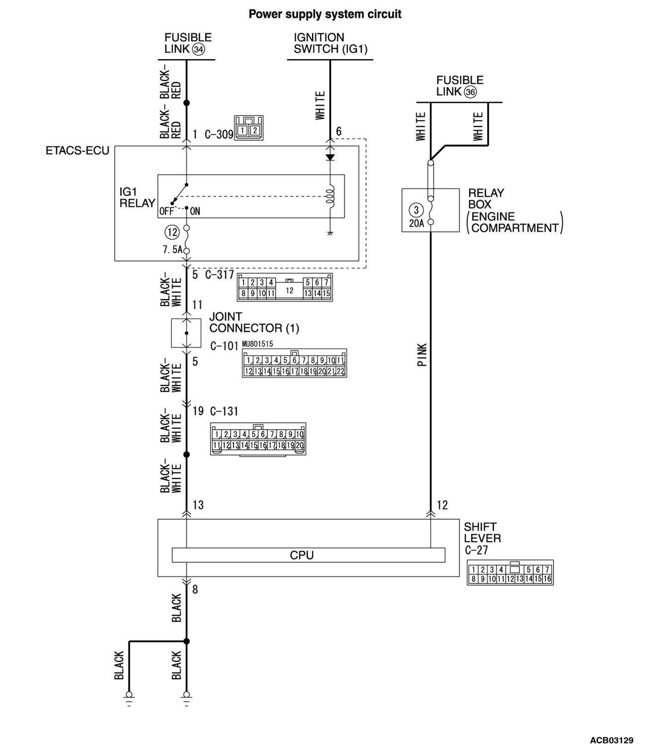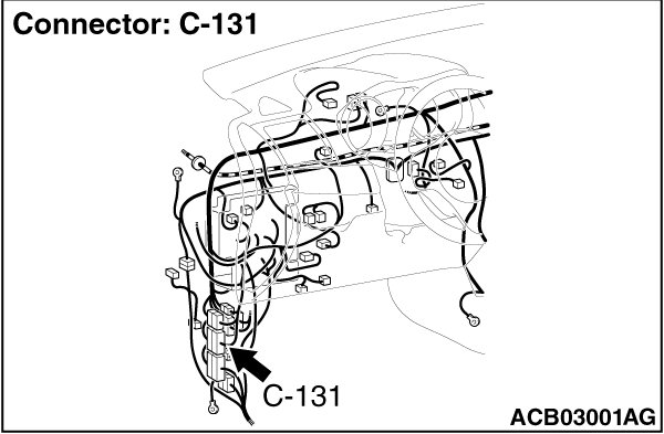 STEP 10. Inspection of the J/C (1), shift lever-ECU connector, intermediate connector, and ETACS-ECU connector: C-101, C-27, C-131, C-317