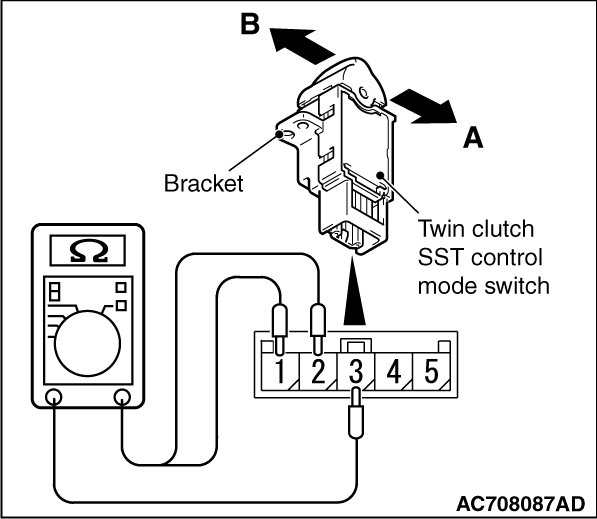1. Check the continuity between the connector terminals of twin clutch SST control mode switch.