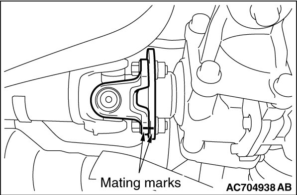 1. Put mating marks on the flange yoke and the differential companion flange and remove the connecting nuts.