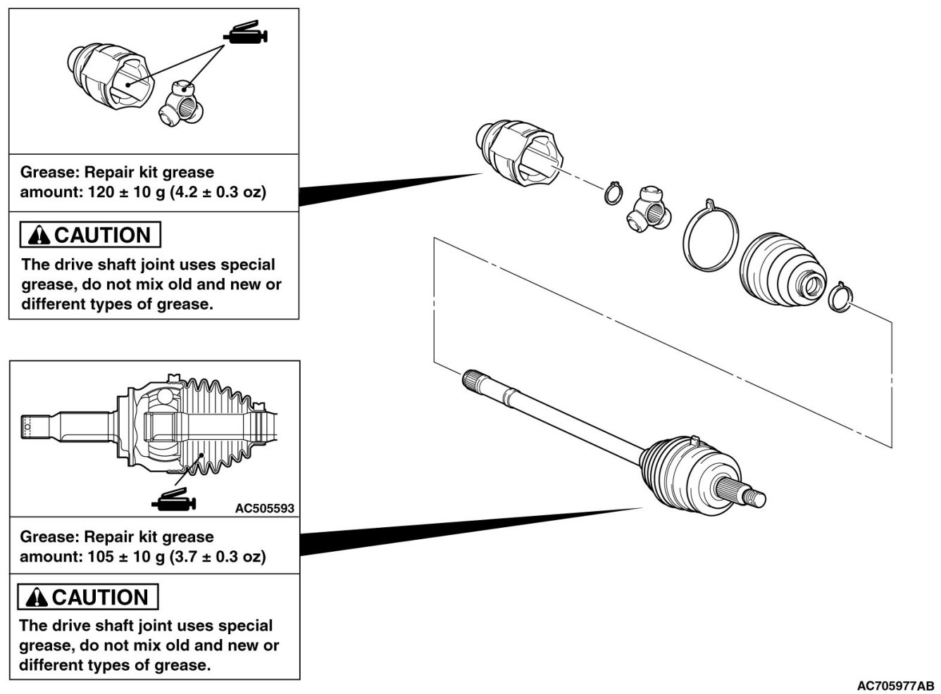 - The driveshaft joint use special grease. Do not mix old and new or different types of grease.