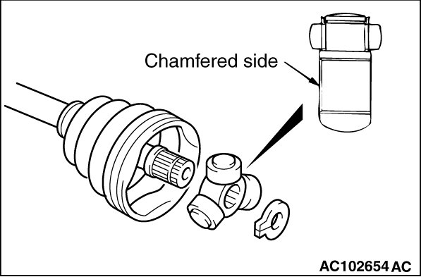 2. Install the spider assembly to the shaft from the direction of the spline chamfered side.