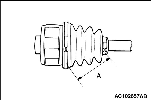 Adjust the distance (A shown in the illustration) between the boot bands to the standard value to adjust the air volume inside the ETJ boot to the specified value, then be sure to tighten the ETJ boot band (large) and ETJ boot band (small).