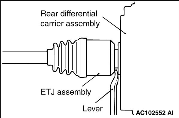 - Never pull out the rear driveshaft assembly from the EBJ assembly side. Otherwise, the ETJ assembly may be damaged. Always pull out from the ETJ side with a lever.