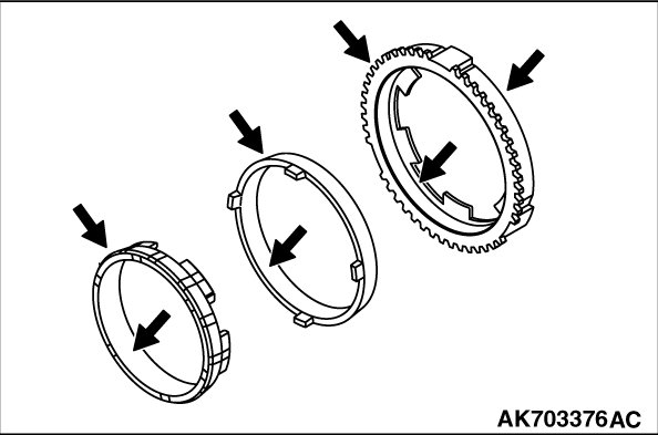 3. Check that the outer synchronizer ring and synchronizer key contact surface is free of damage and wear.