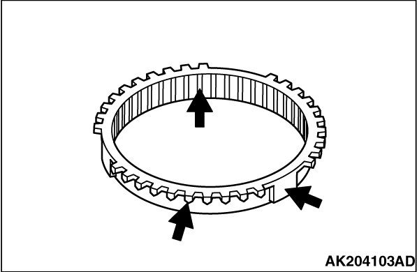 3. Check that the synchronizer ring and synchronizer key are not damaged or worn in the contact surface.