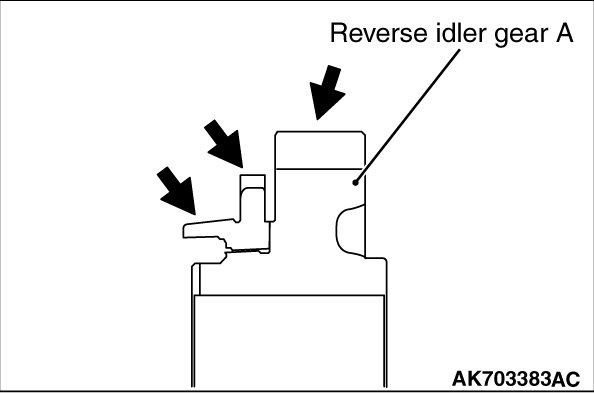 1. Check that the helical gear and the tooth surfaces of the clutch gear of the reverse idler gear A are free of damage or wear.
