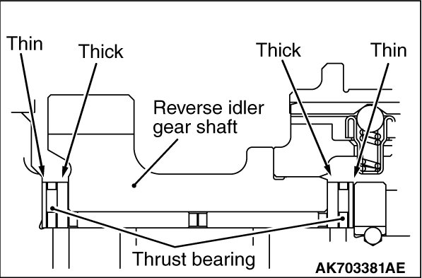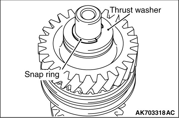 .Select and install appropriate snap ring onto the reverse idler gear shaft so that the clearance of the thrust washer A meets the standard value.