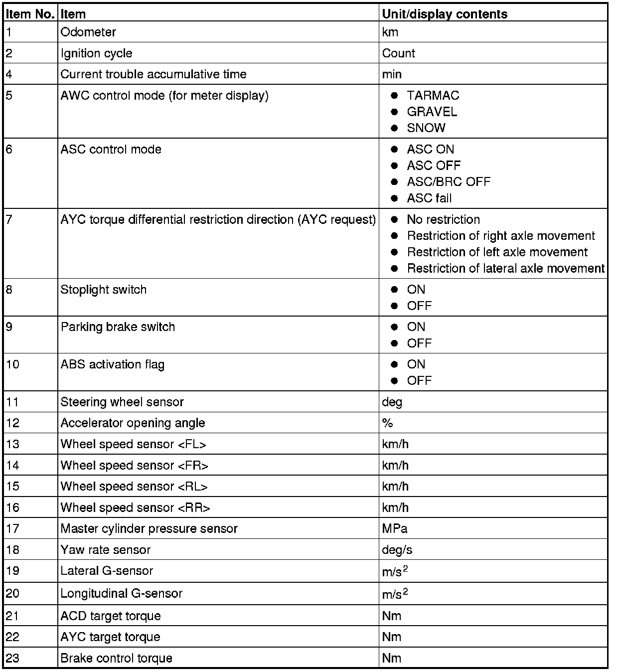 Data of when the diagnostic trouble code is determined is obtained, and the status of S-AWC is stored. By analyzing each data using the scan tool, troubleshooting can be carried out efficiently.