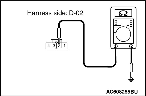 (2)Measure the resistance between D-02 lighting control sensor connector terminal No.2 and body ground.