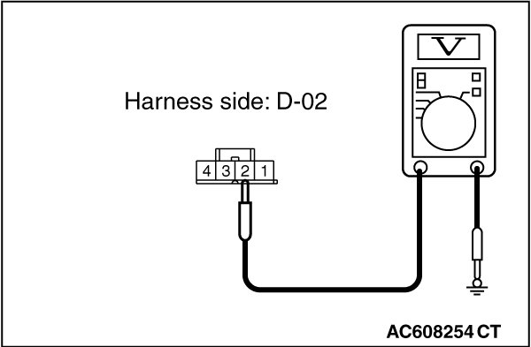 (2)Measure the voltage between D-02 lighting control sensor connector terminal No.1 and body ground.