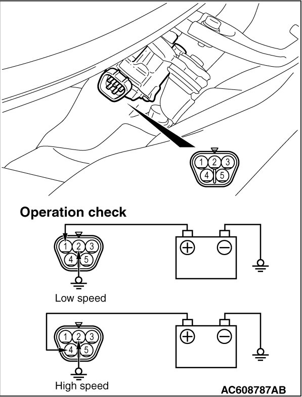 Connect the battery to the windshield wiper motor to inspect the operation of motor rotation at low or high speed.