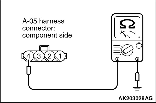 (1)Disconnect the connector A-05 and measure at the harness side.