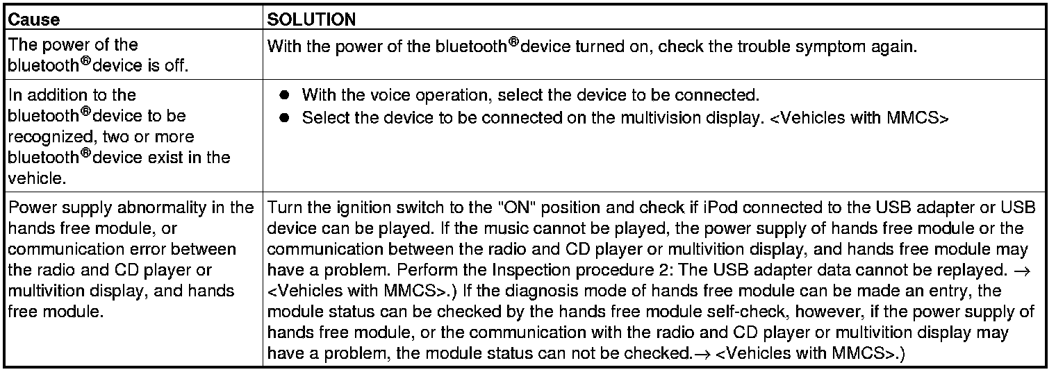 Pairing of the bluetooth(R)device (mobile phone or music player) and hands free module cannot be made.