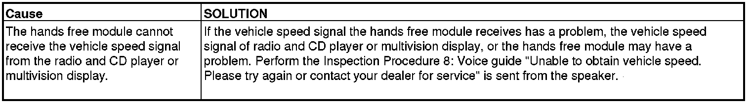 Voice guide "Unable to obtain vehicle speed. Please try again or contact your dealer for service" is sent from the speaker.