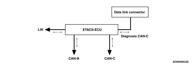 As a central ECU for the on-vehicle communication network system established in the vehicle, the gateway function is integrated into ETACS-ECU. The gateway function offers the following functions: