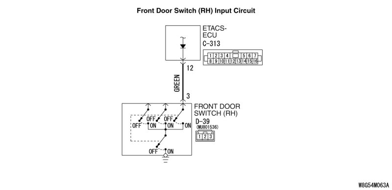 Inspection Procedure 6: ETACS-ECU does not receive any signal from the front door switch (RH).