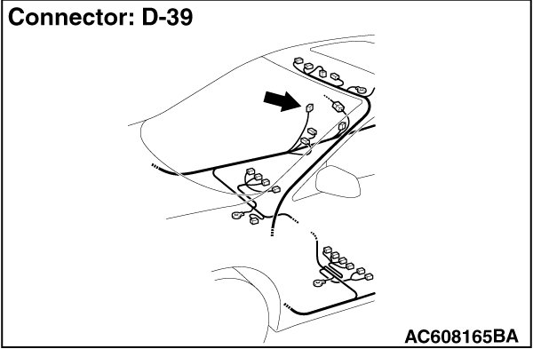 STEP 5. Check the wiring harness between front door switch (RH) connector D-39 (terminal 3) and ETACS-ECU connector C-313 (terminal 12).