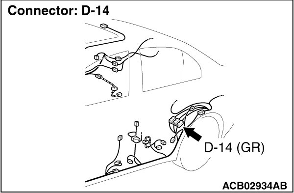 STEP 3. Check trunk lid lock actuator connector F-12 and ETACS-ECU connector C-311 for loose, corroded or damaged terminals, or terminals pushed back in the connector.