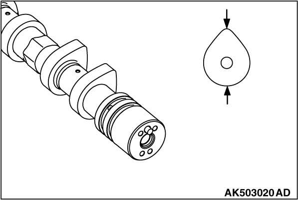 Measure camshaft height (camshaft major axis). If the height is less than the limit, replace the camshaft.