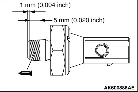 2. Apply sealant (Three bond 1212D, Three bond 1215 or equivalent) of 5 mm to the threaded portion of the engine oil pressure switch shown in the illustration.