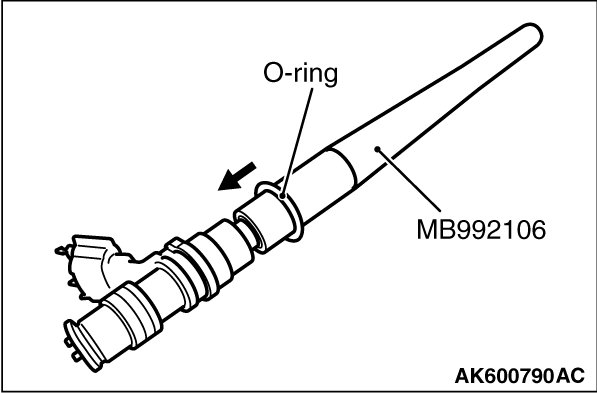 When inserting an O-ring into the injector on the injection nozzle side, use special tool MB992106 to gradually expand the O-ring, and fit it in place.