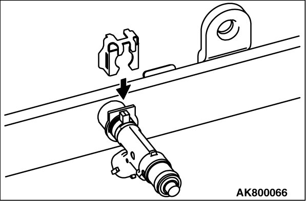 2. Insert the injector into the fuel rail while rotating the injector from side to side, taking care not to damage the O-ring.
