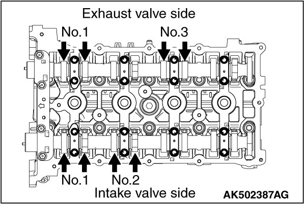 Exhaust side: 0.30 ± 0.03 mm (0.012 ± 0.001 inch)