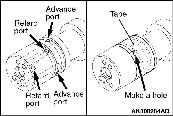 1. Seal with a tape all the intake camshaft ports for the advanced angle and the retarded angle.