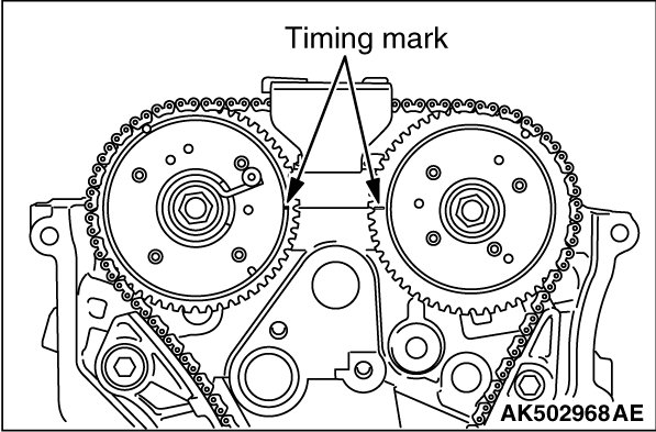 The timing mark of the V.V.T. exhaust sprocket must be at the illustrated position.