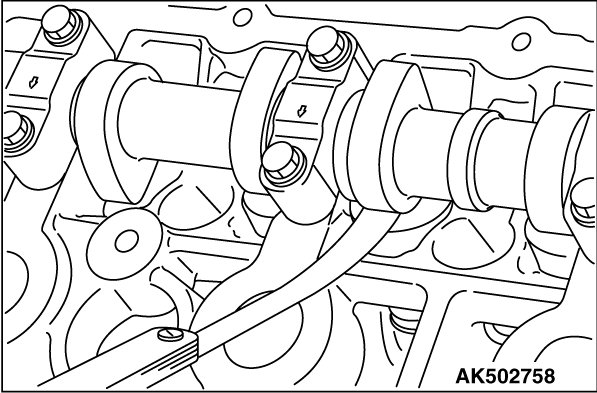 3. Use a thickness gauge to measure clearance between the camshaft and valve tappet.