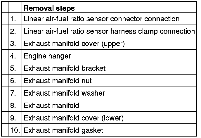 3. Remove the exhaust manifold and the exhaust manifold cover (lower) as a set.