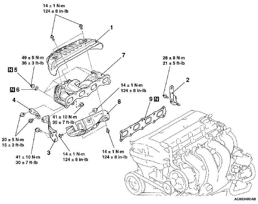 2. Make sure that the exhaust manifold bracket is closely contacted with the installation surface of each part.
