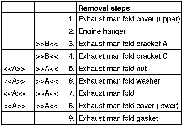 [[A]] EXHAUST MANIFOLD NUT/EXHAUST MANIFOLD WASHER/EXHAUST MANIFOLD/EXHAUST MANIFOLD COVER (LOWER) REMOVAL
