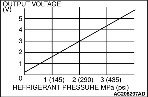 4. At this time, check to see that the voltage of A/C pressure sensor terminal No.