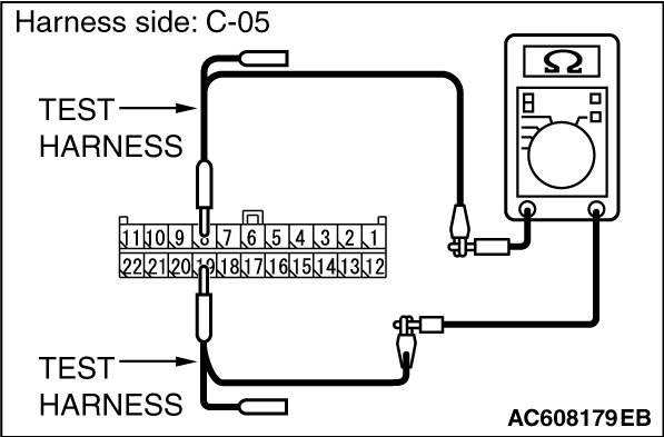STEP 18. Check the wiring harness between joint connector (CAN2) C-05 and ETACS-ECU connector C-301 for line-to-line short. Measure the resistance at joint connector (CAN2) C-05.