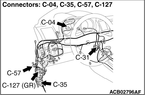 STEP 1. Check joint connector (CAN2) C-05, AWD-ECU connector C-57 and intermediate connector C-35 for loose, corroded or damaged terminals, or terminals pushed back in the connector.