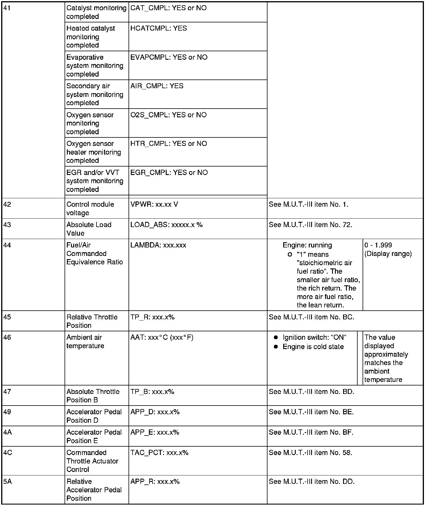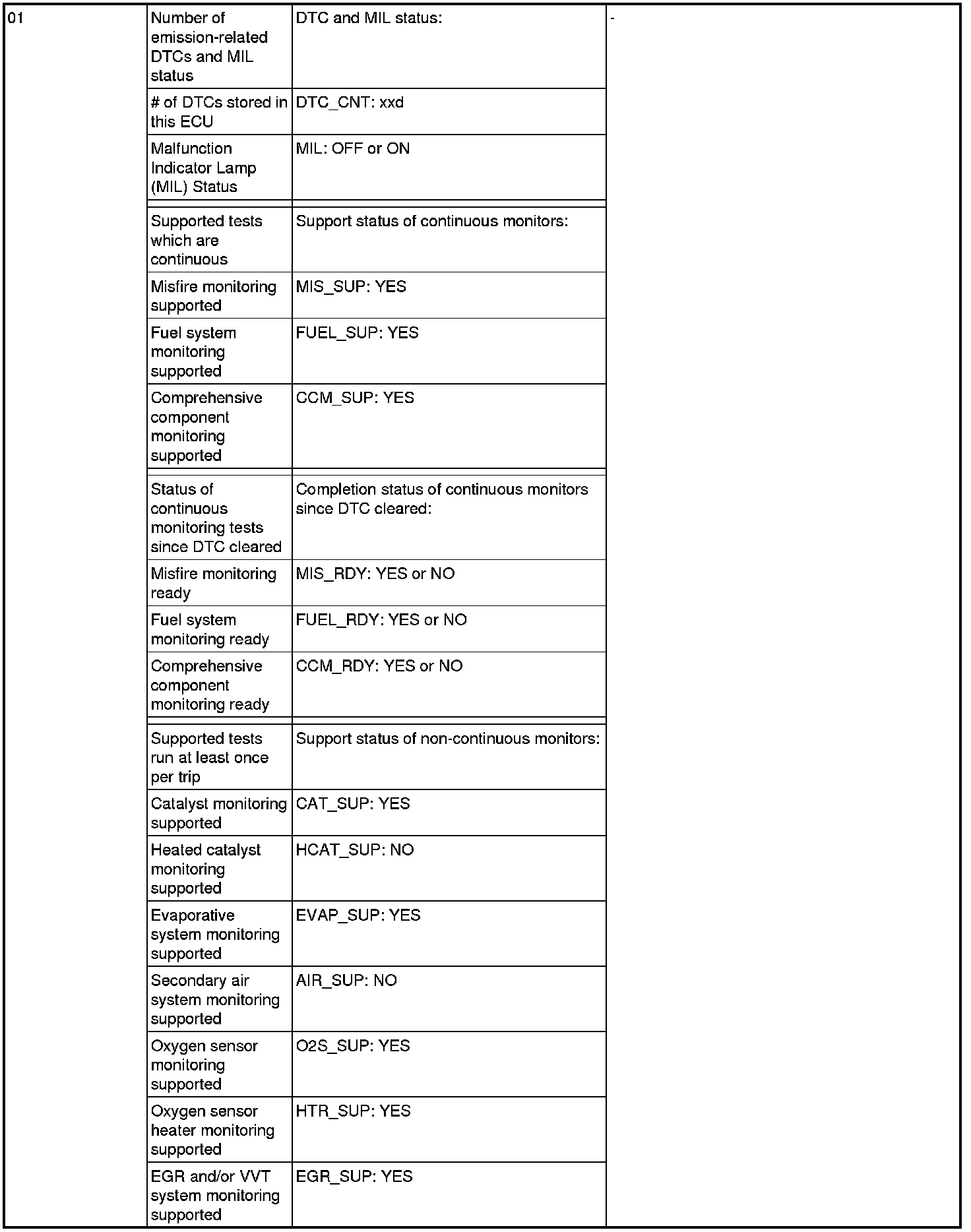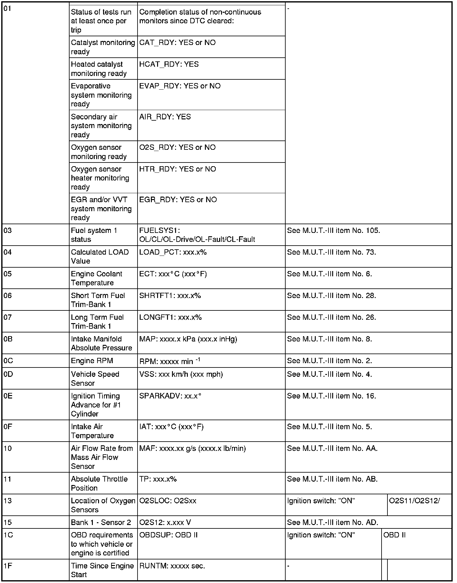 General Scan Tool (GST) Mode 01 Reference Table