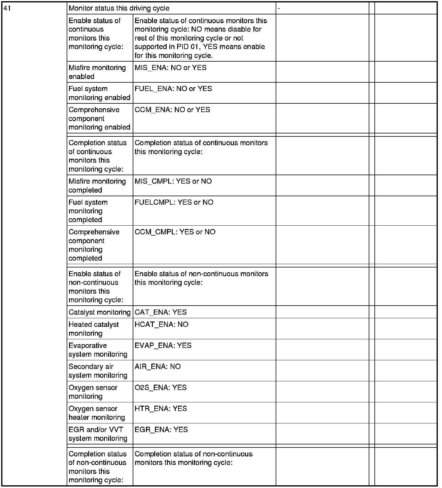 The ECM will respond to this message by transmitting the requested data value last determined by the system. All data values returned for sensor readings will be actual readings, not default or substitute values used by the system because of a fault with that sensor.
