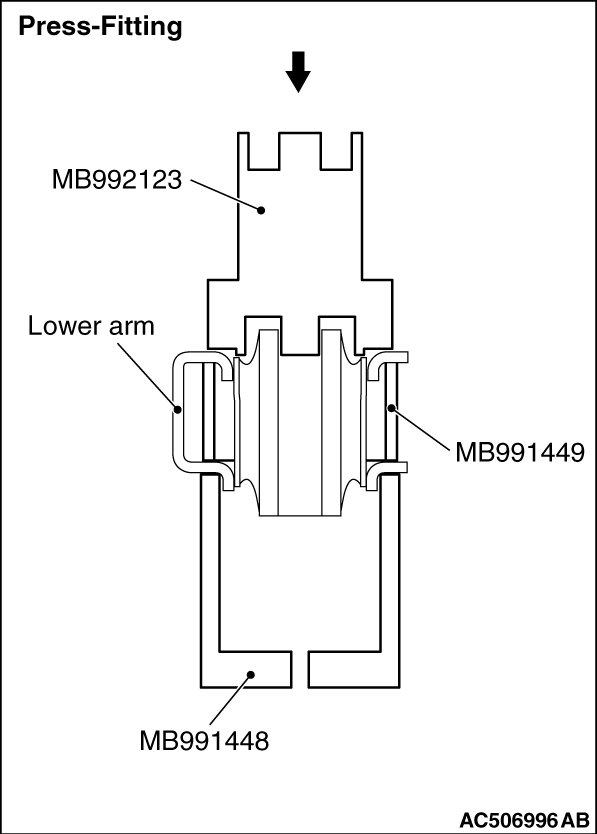 Use the special tools MB992123, MB991448 and MB991449 to remove and press-fit the lower arm bushing.