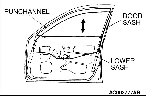 4. If the door window glass does not move up and down smoothly, check and repair as follows:
