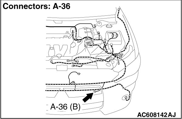 STEP 3. Check ambient air temperature sensor connector A-36 and ETACS-ECU connector C-312 for loose, corroded or damaged terminals, or terminals pushed back in the connector.