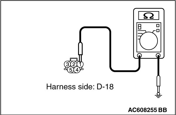 STEP 4. Check the wiring harness between fuel pump module connector D-18 (terminal 1) and ground.
