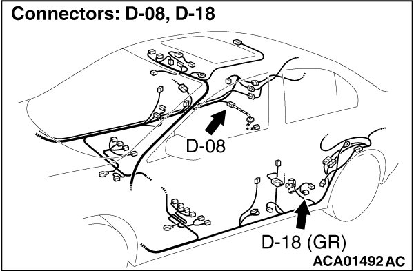 Also check intermediate connectors C-22 and D-08. If intermediate connectors C-22 and D-08 are damaged, repair or replace the connector as described in Harness Connector Inspection Harness Connector Inspection.