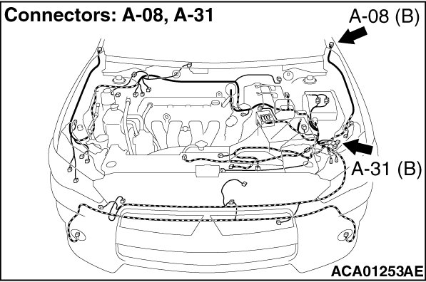 Q. Are headlight assembly (LH) connector A-31 [front], side turn-signal light (LH) connector A-08 [side], rear combination light (LH) connector F-20 [LANCER