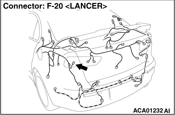 - Measure the resistance between rear combination light (LH) connector F-20 (terminal 1) and body ground. [LANCER (Rear)]