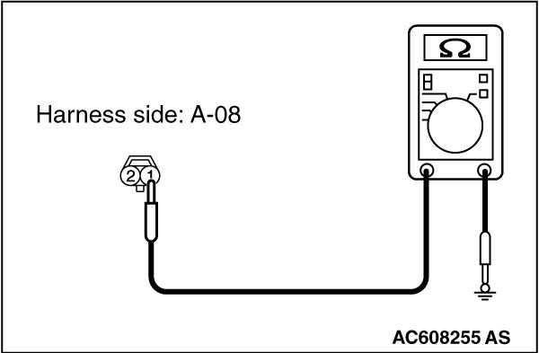 - Measure the resistance between side turn-signal light (LH) connector A-08 (terminal 1) and body ground. [Side]