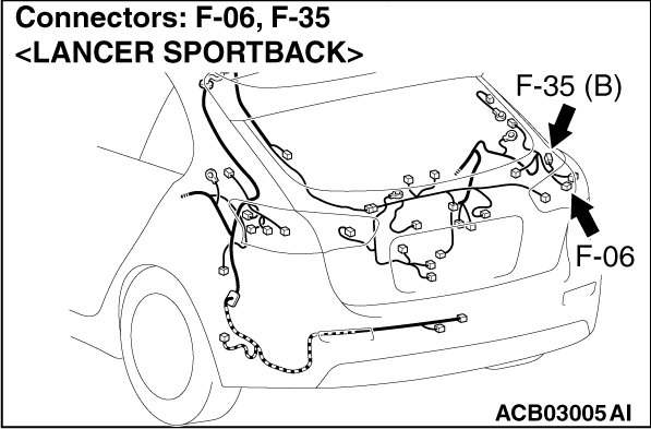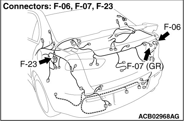 - Check the wiring harness between rear combination light (taillight: RH) connector F-06 (terminal 2) and ETACS-ECU connector C-311 (terminal 13).