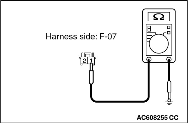 - Measure the resistance between taillight (RH) connector F-07 (terminal 1) and the body ground.