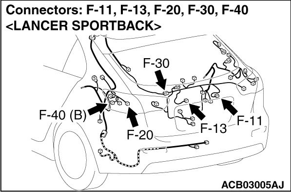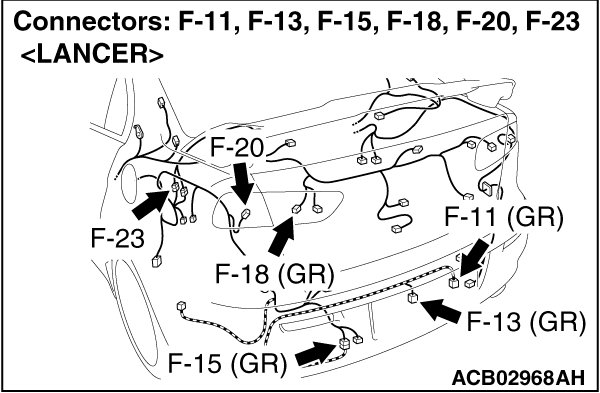 - Check the wiring harness between rear combination light (taillight: LH) connector F-20 (terminal 2) and ETACS-ECU connector C-311 (terminal 10).