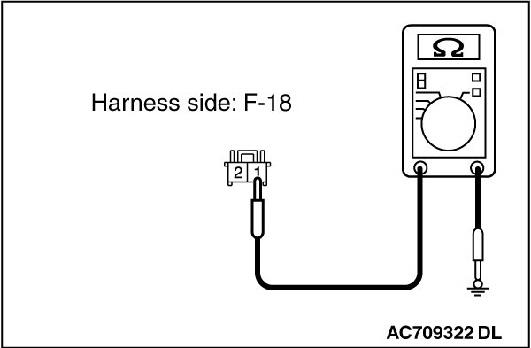 - Measure the resistance between taillight (LH) connector F-18 (terminal 1) and body ground.